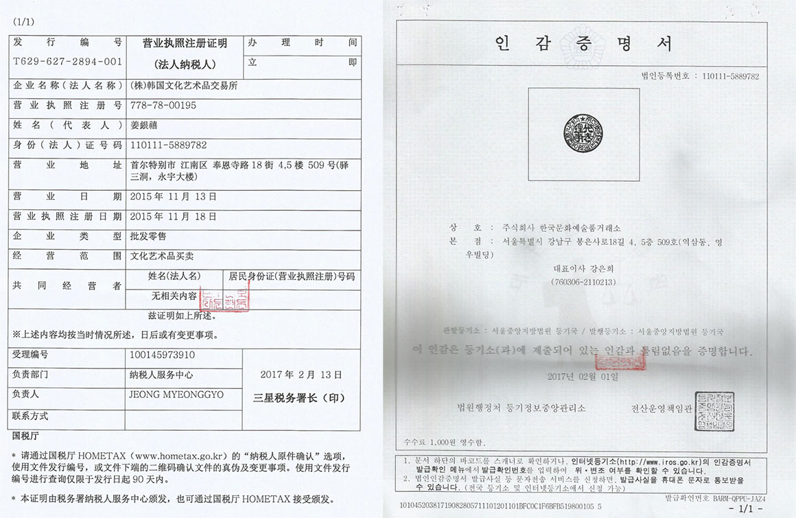 韓國文化藝術(shù)品交易所于2015年11月13日成立, 主要經(jīng)營范圍:文化藝術(shù)品交易(郵票,貨幣,美術(shù)品等)、文化藝術(shù)品進(jìn)出口(郵票,貨幣,美術(shù)品等)、電子商交易、網(wǎng)路購物網(wǎng)站、移動(dòng)App開發(fā)、娛樂產(chǎn)業(yè)、海外觀光業(yè)、海外投資及眾籌、房地產(chǎn)開發(fā)、有關(guān)服務(wù)行業(yè)、有關(guān)批發(fā)零售、有關(guān)進(jìn)出口業(yè)務(wù)、有關(guān)附帶事業(yè)等。