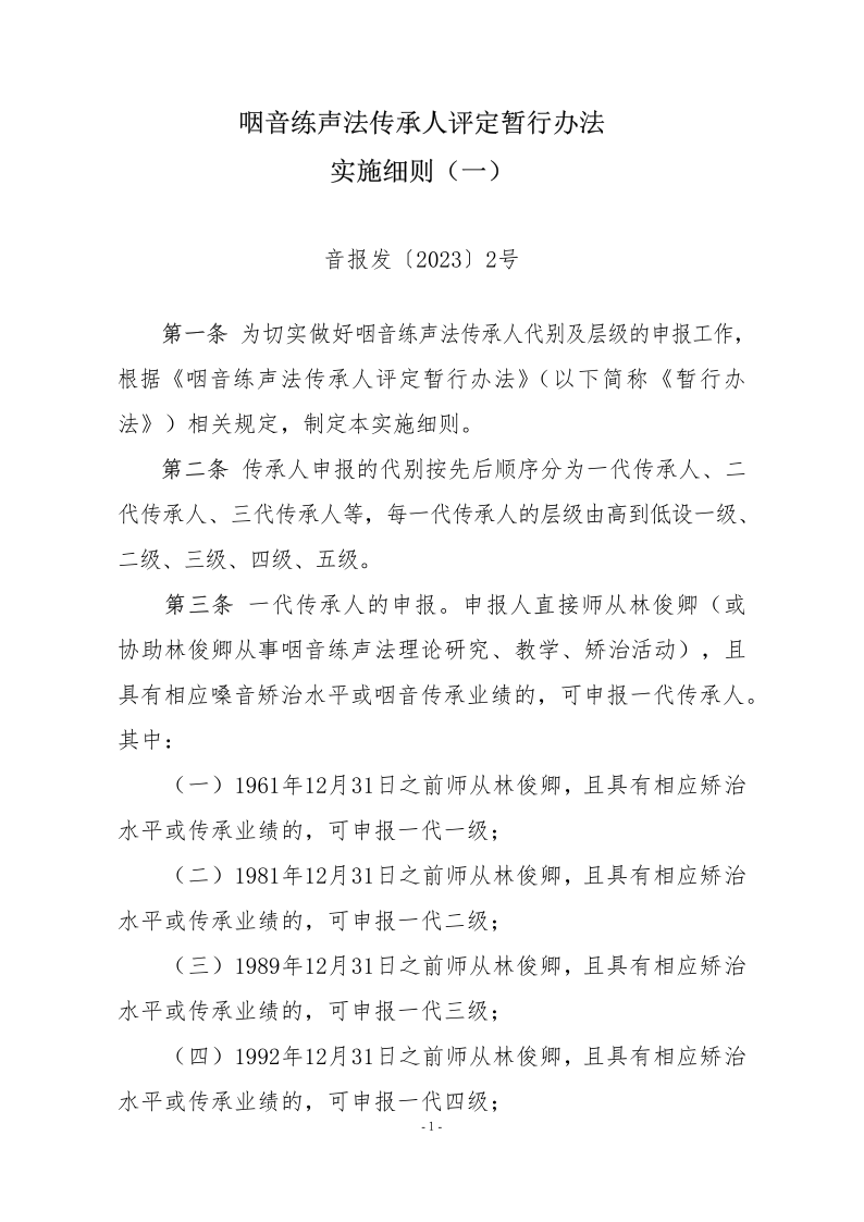 咽音練聲法傳承人評(píng)定暫行辦法實(shí)施細(xì)則(一)正式發(fā)布