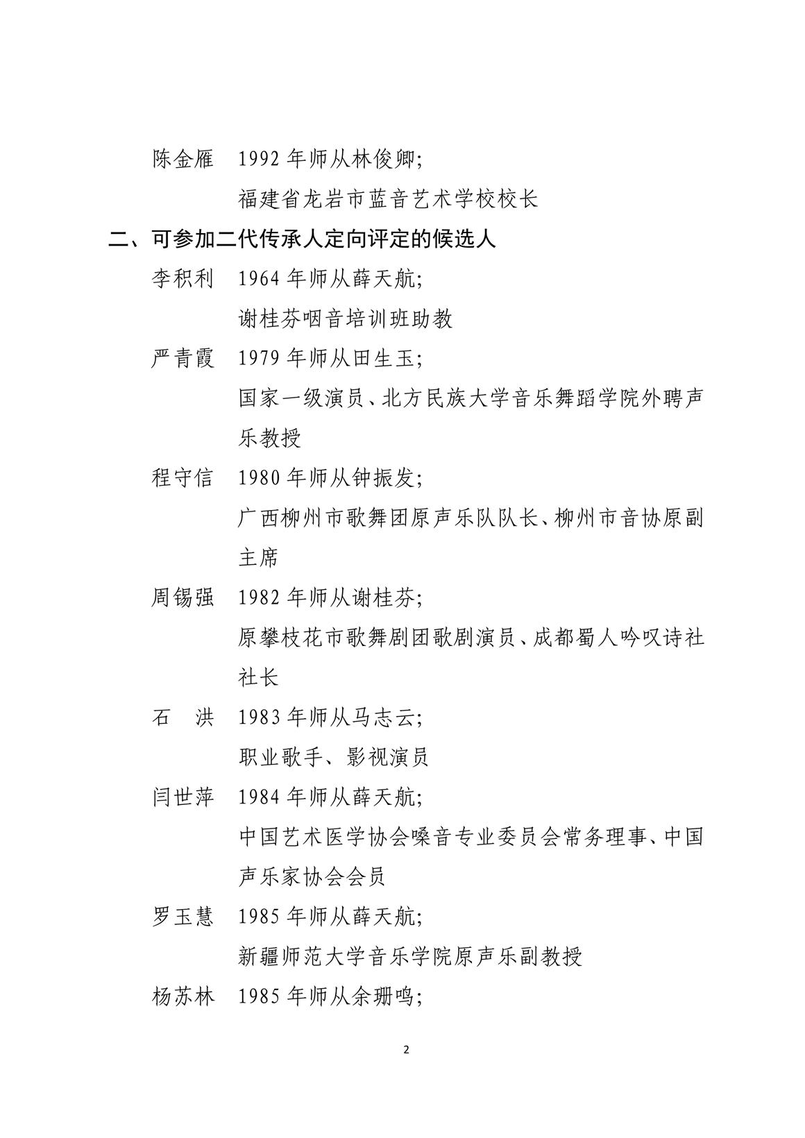 咽音練聲法傳承人定向評(píng)定候選人名單(一)