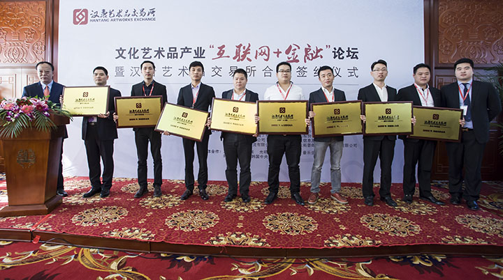 2015年10月29日,“文化藝術(shù)品產(chǎn)業(yè)‘互聯(lián)網(wǎng)+金融’論壇暨漢唐交易所授權(quán)與合作簽約儀式”在京隆重召開。文化部、中宣部、人民日報相關(guān)領(lǐng)導(dǎo),各界代表、金融文化界精英、頂級行業(yè)專家、各大實力經(jīng)紀(jì)商等嘉賓齊聚北京民族文化宮,共論了“互聯(lián)網(wǎng)+”時代下文化藝術(shù)品產(chǎn)業(yè)現(xiàn)狀、未來和發(fā)展,見證了北京天首基金、北京浩正投資、人民日報《人文歷史》、韓國友利銀行、韓國美術(shù)協(xié)會、韓國郵票商協(xié)會等幾十家中韓機(jī)構(gòu)與漢唐藝術(shù)品交易所合作的簽約。